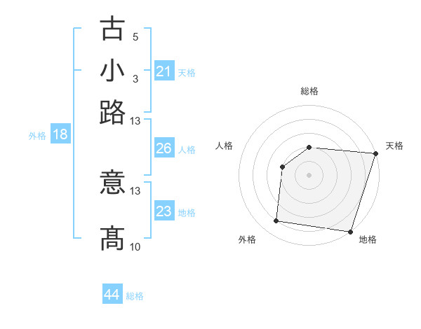 古小路 意髙さんを姓名の画数から五運を鑑定