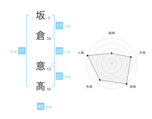 坂倉 意髙さんを姓名の画数から五運を鑑定