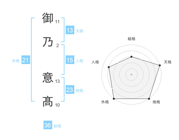 御乃 意髙さんの天格は13画の5点!