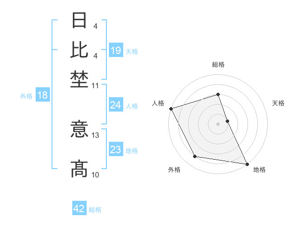 日比埜 意髙さんを姓名の画数から五運を鑑定