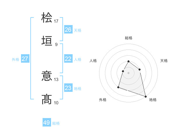 桧垣 意髙さんを姓名の画数から五運を鑑定