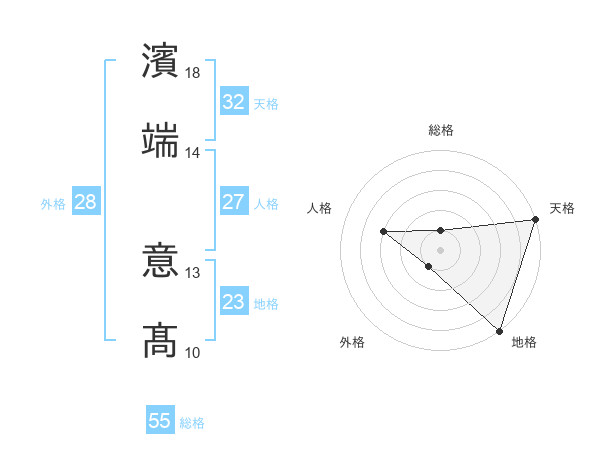 濱端 意髙さんの総格は55画の1点!