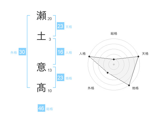 瀬土 意髙さんの地格は23画の5点!