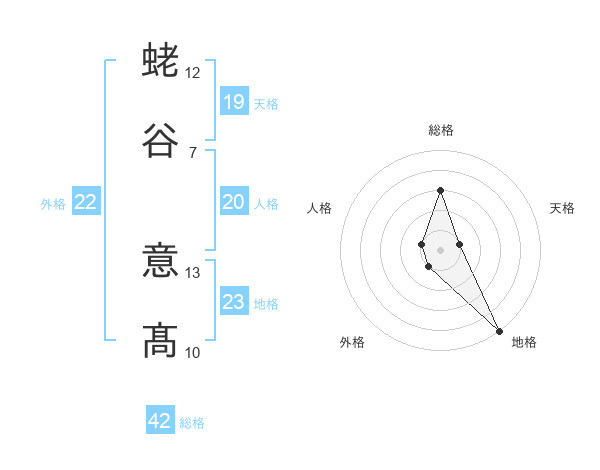 蛯谷 意髙さんを姓名の画数から五運を鑑定