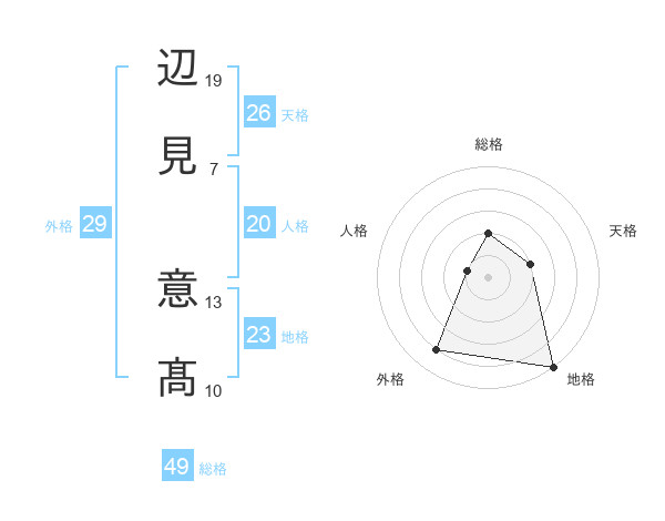 辺見 意髙さんの総格は49画の2点!