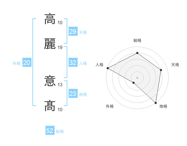 高麗 意髙さんを姓名の画数から五運を鑑定
