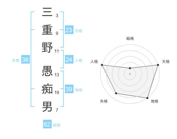 三重野 愚痴男さんの外格は38画の4点