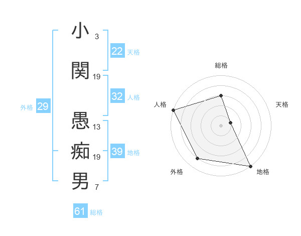 小関 愚痴男さんの天格は22画の1点