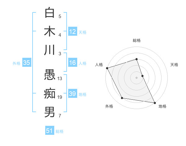 白木川 愚痴男さんを姓名の画数から五運を鑑定