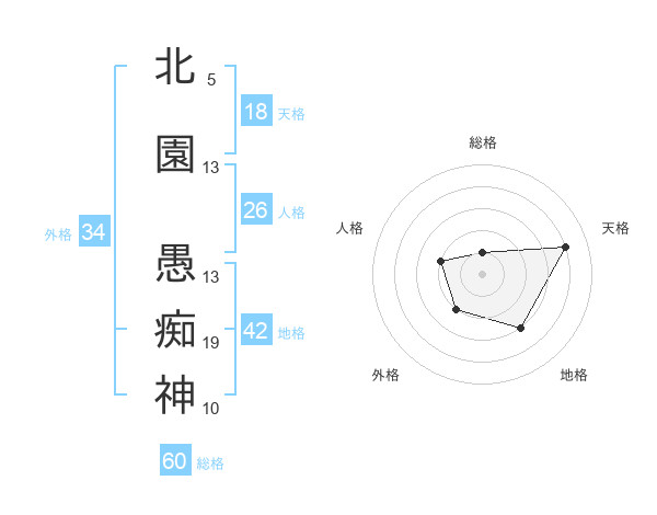 北園 愚痴神さんを姓名の画数から五運を鑑定