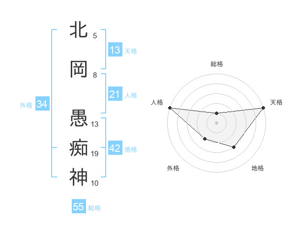 北岡 愚痴神さんを姓名の画数から五運を鑑定
