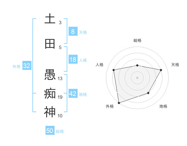 土田 愚痴神さんの総格は50画の2点