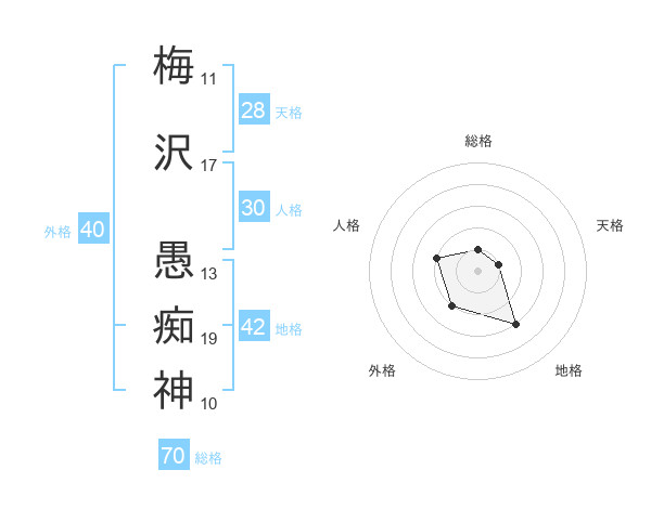 梅沢 愚痴神さんを姓名の画数から五運を鑑定