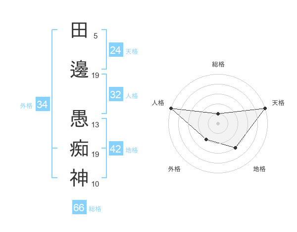 田邊 愚痴神さんの天格は24画の5点!
