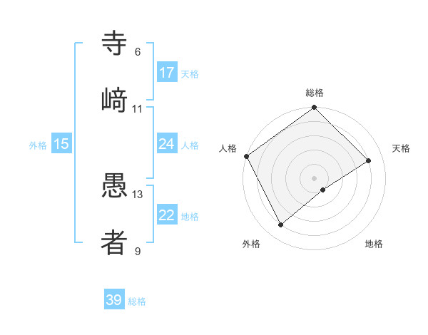 寺﨑 愚者さんの総格は39画の5点!