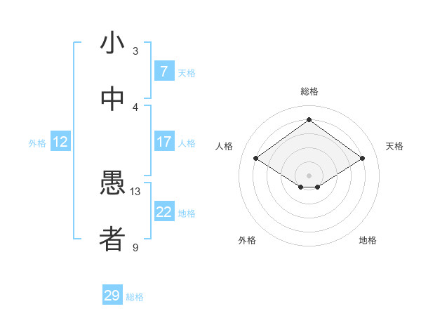 小中 愚者さんの外格は12画の1点!