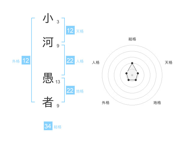 小河 愚者さんの総格は34画の2点!