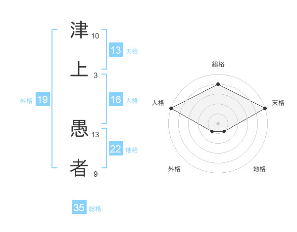 津上 愚者さんの天格は13画の5点!