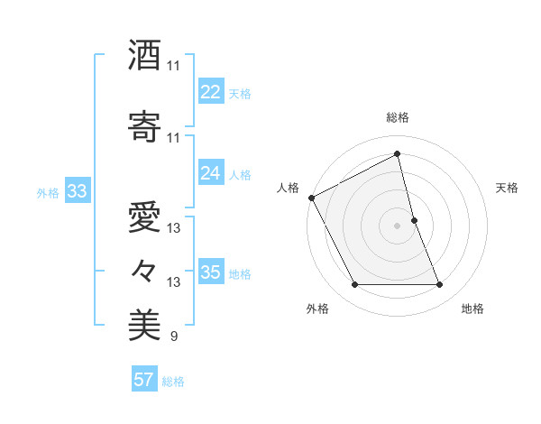 酒寄 愛々美さんを姓名の画数から五運を鑑定