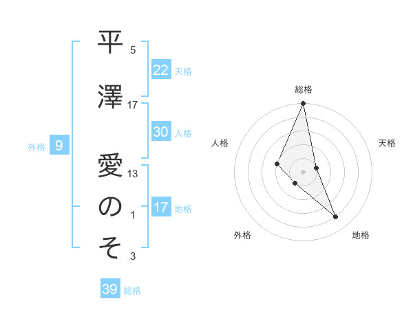 平澤 愛のそさんの総格は39画の5点