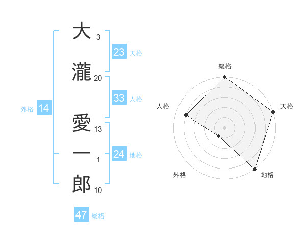 大瀧 愛一郎さんを姓名の画数から五運を鑑定