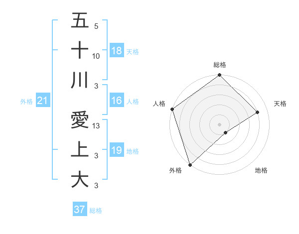 五十川 愛上大さんの総格は37画の5点!