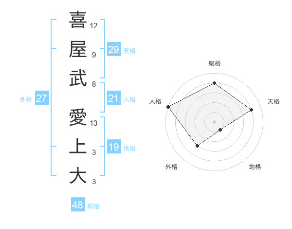 喜屋武 愛上大さんを姓名の画数から五運を鑑定