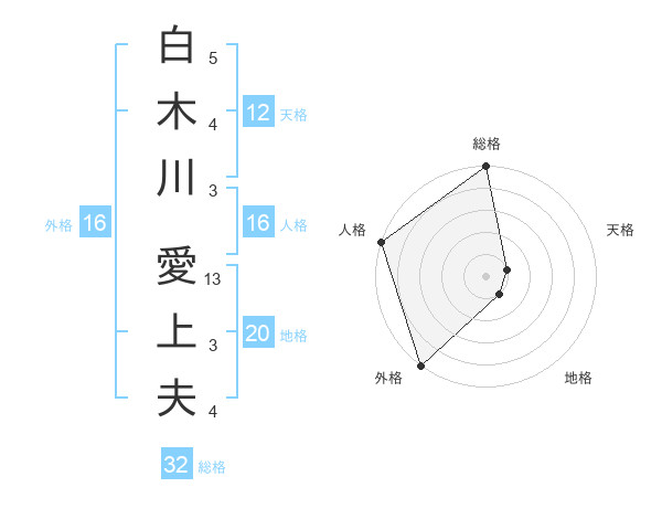 白木川 愛上夫さんを姓名の画数から五運を鑑定
