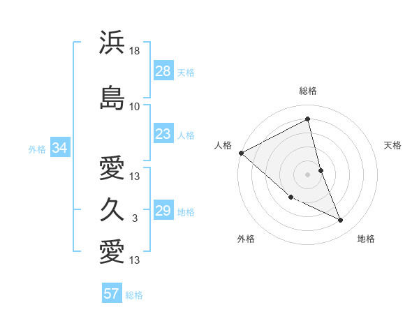 浜島 愛久愛さんを姓名の画数から五運を鑑定