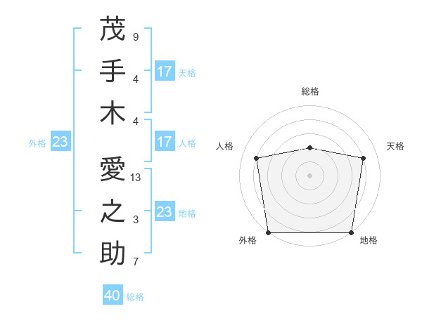 茂手木 愛之助さんの地格は23画の5点!