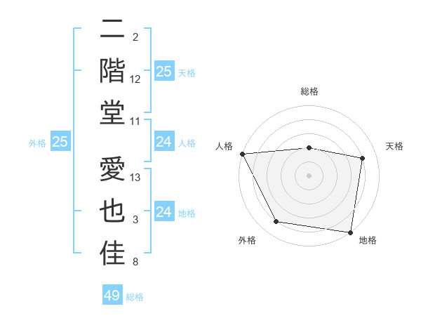 二階堂 愛也佳さんの天格は25画の4点!