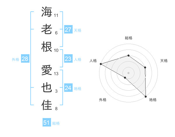 海老根 愛也佳さんを姓名の画数から五運を鑑定