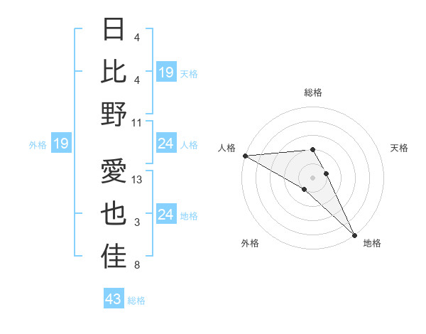 日比野 愛也佳さんの地格は24画の5点!