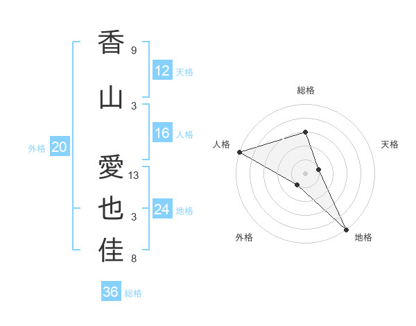 香山 愛也佳さんを姓名の画数から五運を鑑定