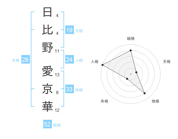 日比野 愛京華さんの総格は52画の4点!