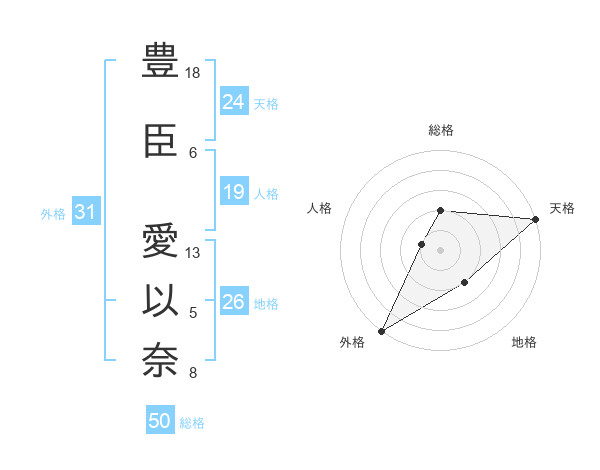 豊臣 愛以奈さんを姓名の画数から五運を鑑定