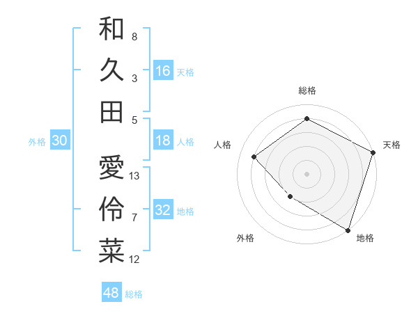 和久田 愛伶菜さんを姓名の画数から五運を鑑定