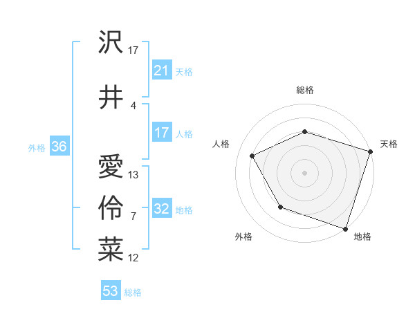 沢井 愛伶菜さんを姓名の画数から五運を鑑定