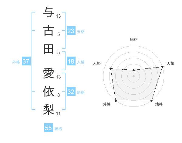 与古田 愛依梨さんの外格は37画の5点!