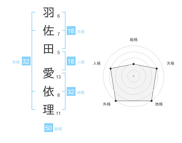 羽佐田 愛依理さんを姓名の画数から五運を鑑定