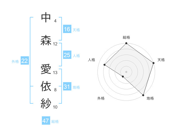 中森 愛依紗さんの総格は47画の5点!