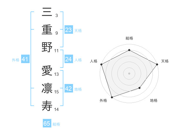 三重野 愛凛寿さんの総格は65画の4点