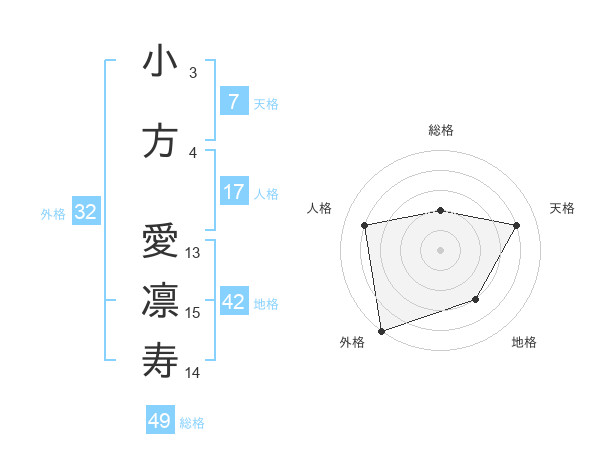 小方 愛凛寿さんの総格は49画の2点!