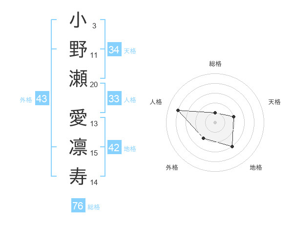 小野瀬 愛凛寿さんを姓名の画数から五運を鑑定