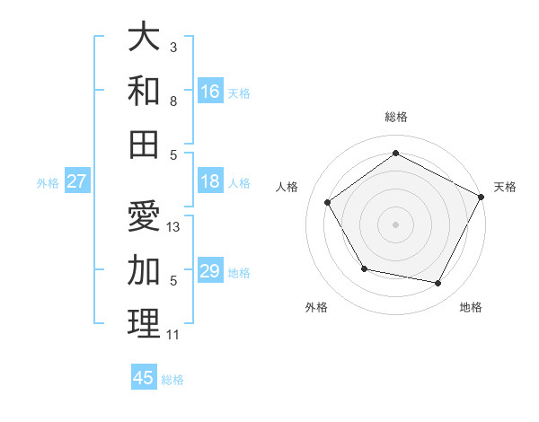 大和田 愛加理さんを姓名の画数から五運を鑑定