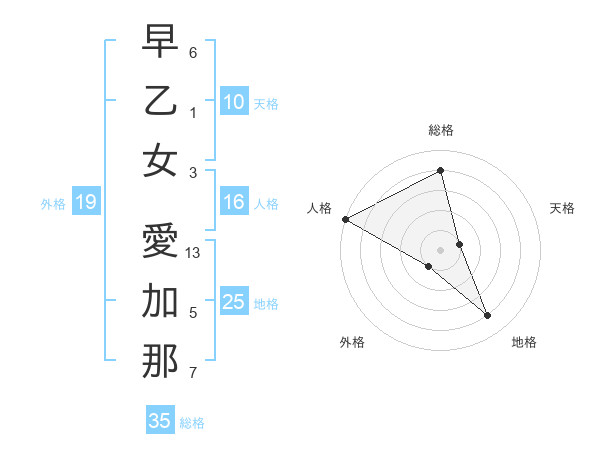 早乙女 愛加那さんを姓名の画数から五運を鑑定