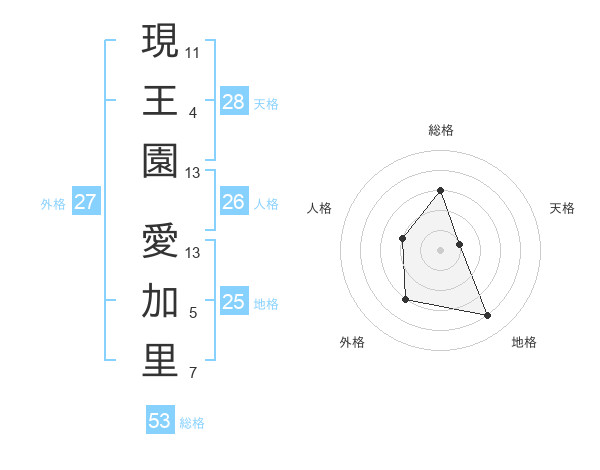 現王園 愛加里さんを姓名の画数から五運を鑑定