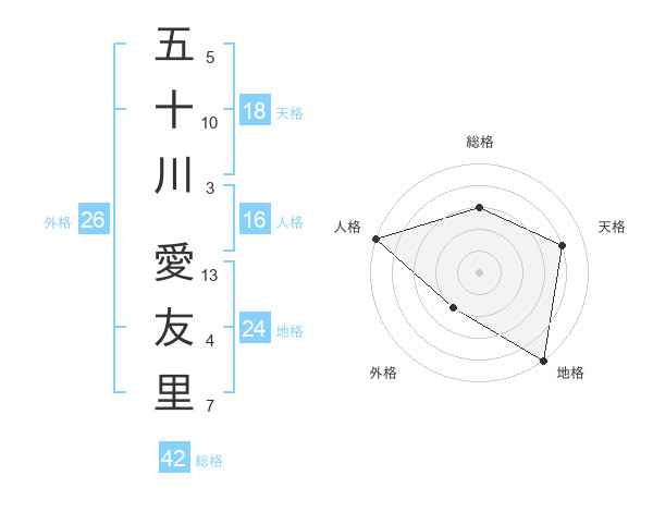 五十川 愛友里さんの天格は18画の4点!