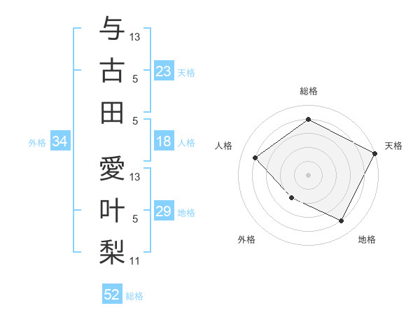 与古田 愛叶梨さんの総格は52画の4点!