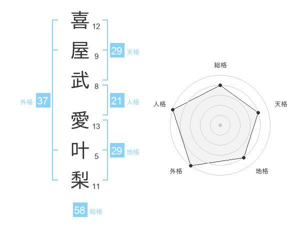 喜屋武 愛叶梨さんの外格は37画の5点!